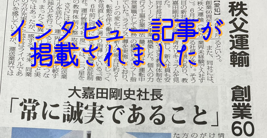 秩父運輸株式会社は、知立市から西三河地方全域に、主に自動車部品の輸送を行なっています。